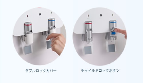 ウォーターサーバーは気になるけど子どもがまだ小さいしいたずらしちゃわないか不安…というご家庭でも安心してウォーターサーバーを導入していただけるので、子育て家庭には人気の機能となっています!